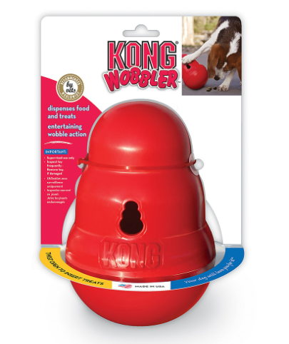 De Wobbler is een KONG-gevormd speeltje dat voedsel afgeeft en een voerbak die rechtop staat totdat het door de poot of de neus van een hond of kat wordt omgeduwd en voedsel afgeeft terwijl het wiebelt, draait en rolt. Door de onvoorspelbare bewegingen blijft het speeltje een uitdaging, zelfs voor de ervaren Wobbler-gebruikers. Gebruik de Wobbler als een alternatief voor de hondenbak en om te helpen voertijd uit te breiden en je hond te laten bewegen.