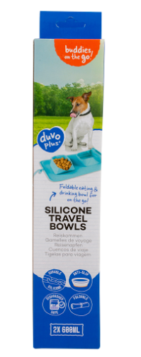 Op reis gaan met je hond was nog nooit zo gemakkelijk, dankzij de compacte siliconen Travel bowls van duvoplus. Het opplooibare design maakt het mogelijk de kom makkelijk mee te nemen en op te bergen. Je kan het zowel voor eten als drinken gebruiken & het is vaatwasserbestendig. Er kan 2x 600ML in de kommen en het heeft een anti-slip bodem