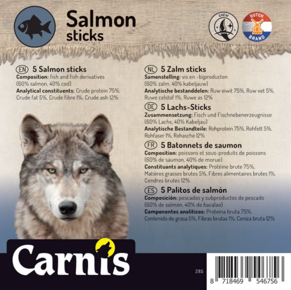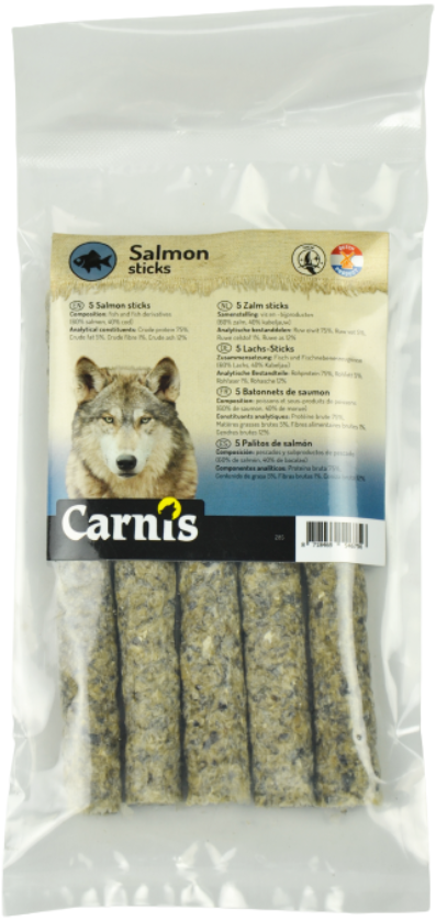Carnis zalm sticks zijn een knapperig tussendoortje voor je hond.