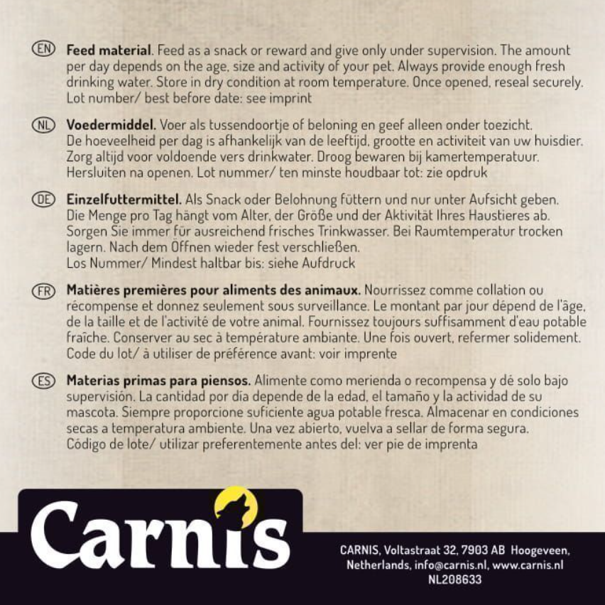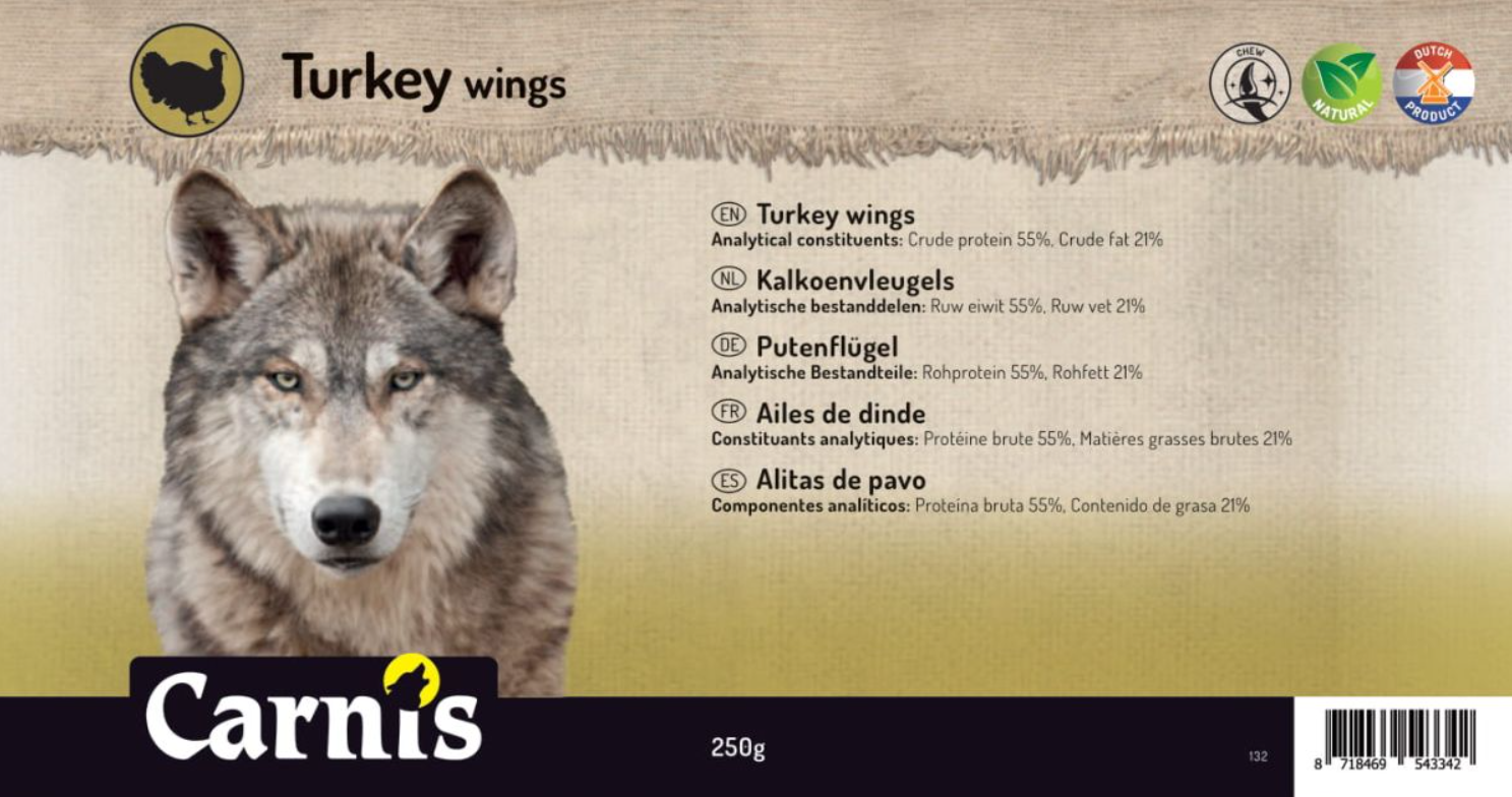 Carnis kalkoenvleugels zijn een krokante en smakelijk snack voor je hond. Ze zijn stevig van structuur, maar niet heel hard. Een heerlijk, 100% natuurlijk tussendoortje.